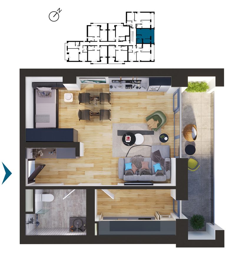 Vizualizați apartamentele cu 1 cameră disponibile în imobilul T1. Apăsați pe apartamentul dorit pentru a afla mai multe informații.
