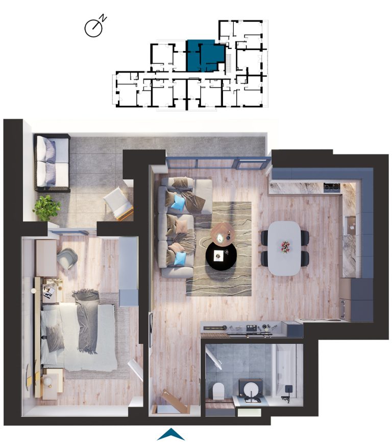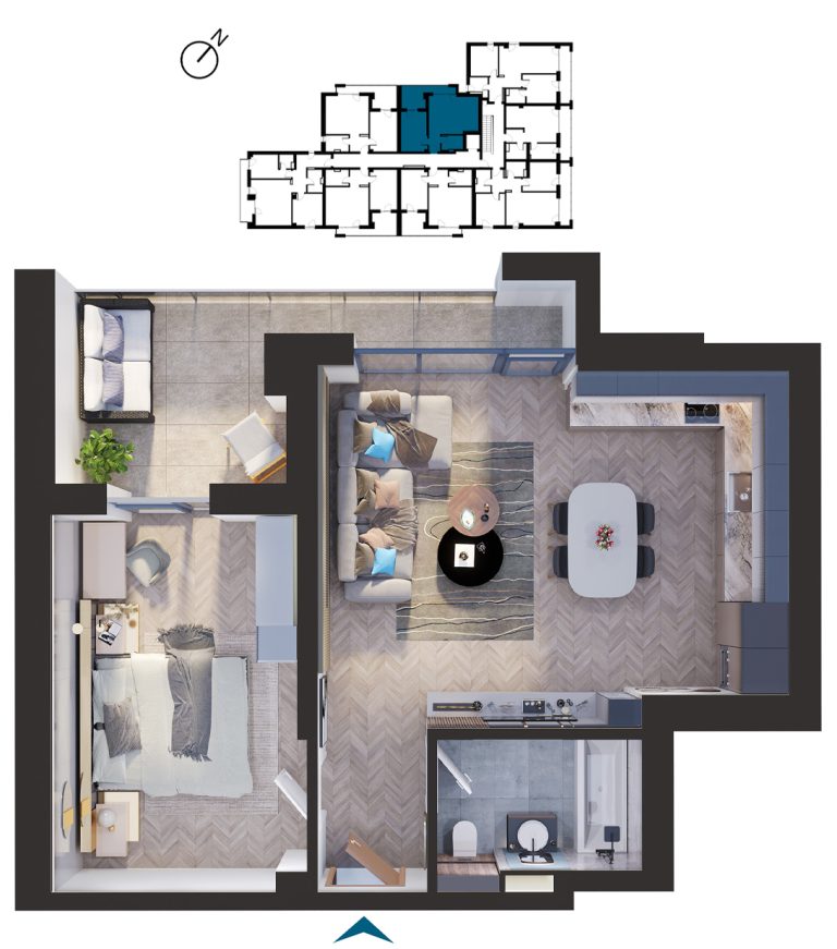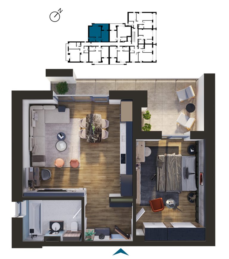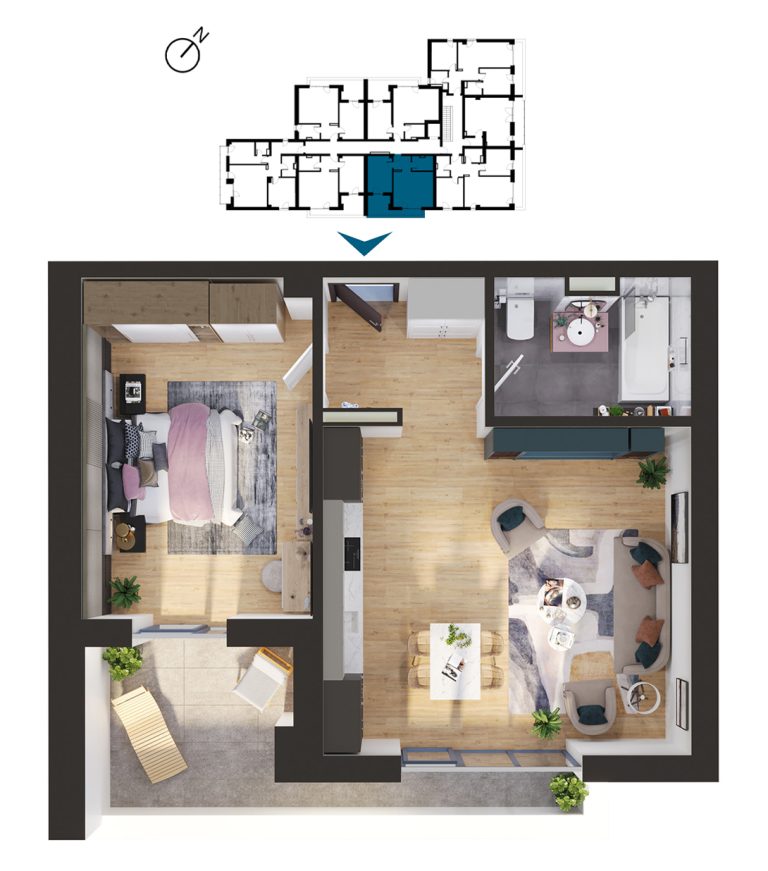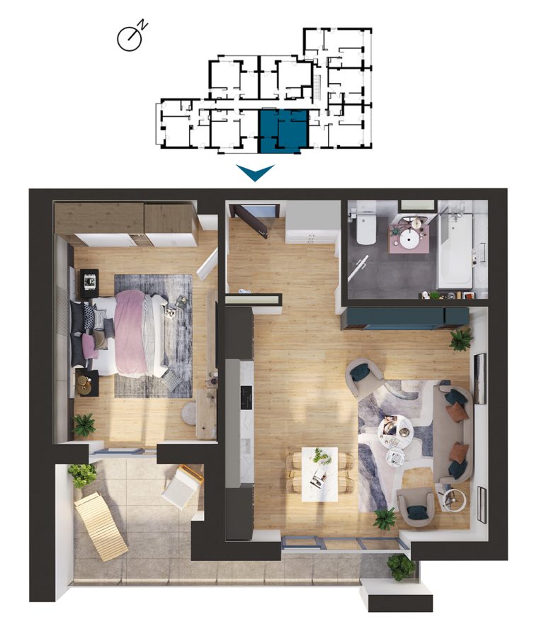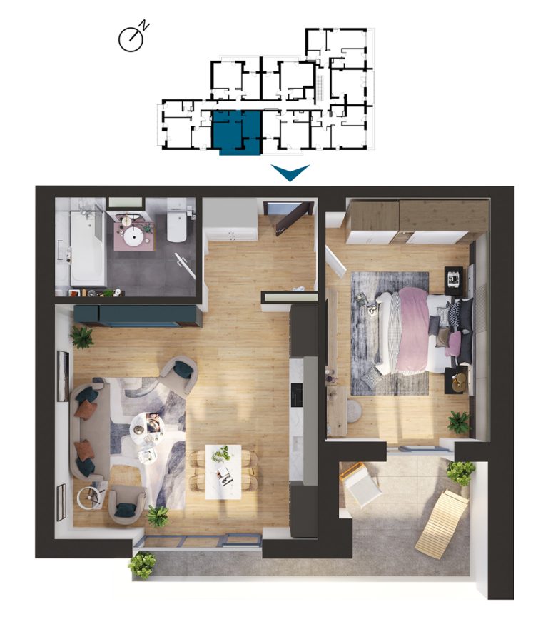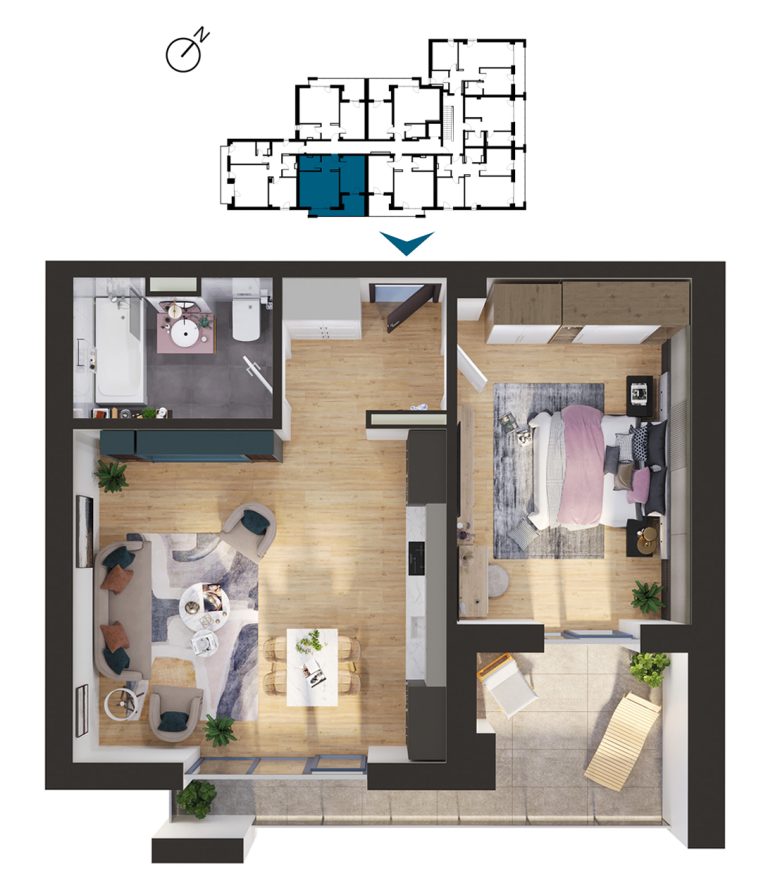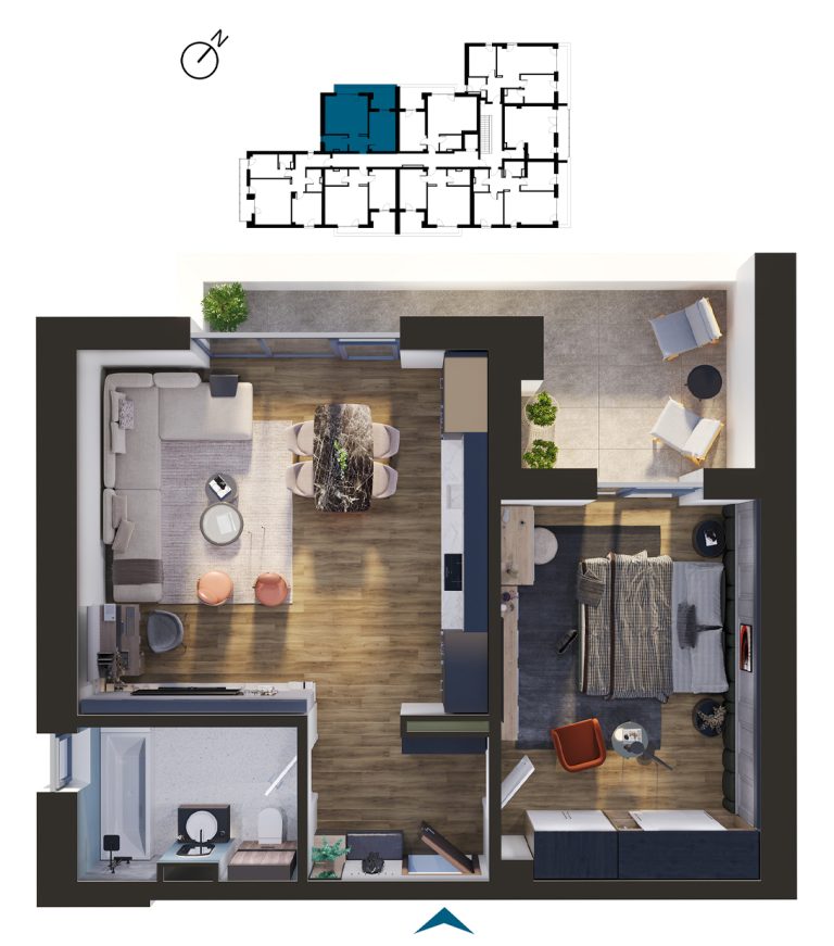 Vizualizați apartamentele cu 2 camere disponibile în imobilul T1. Apăsați pe apartamentul dorit pentru a afla mai multe informații.