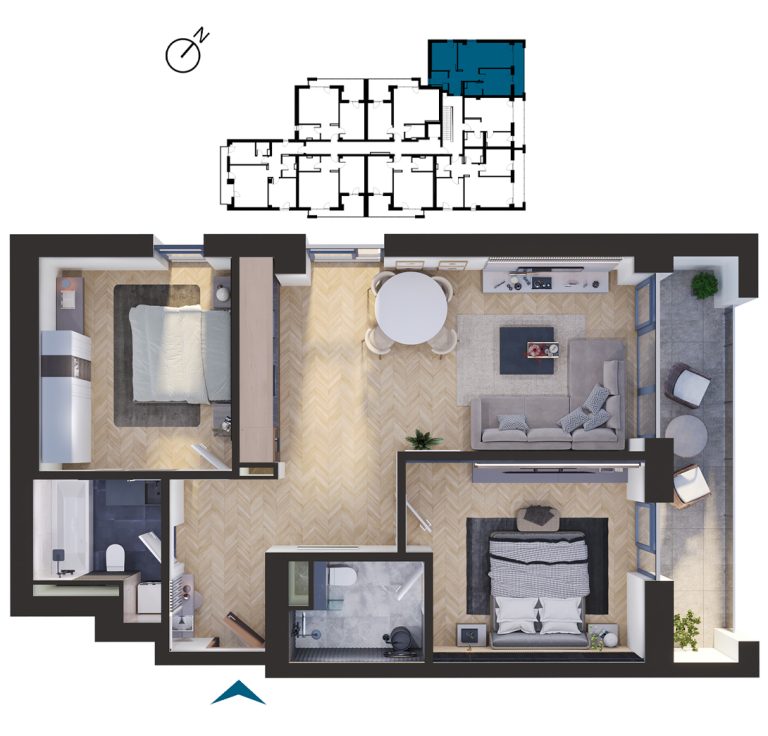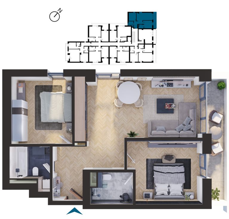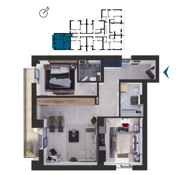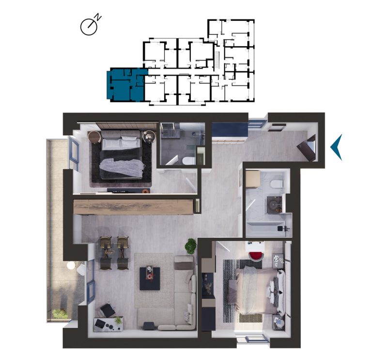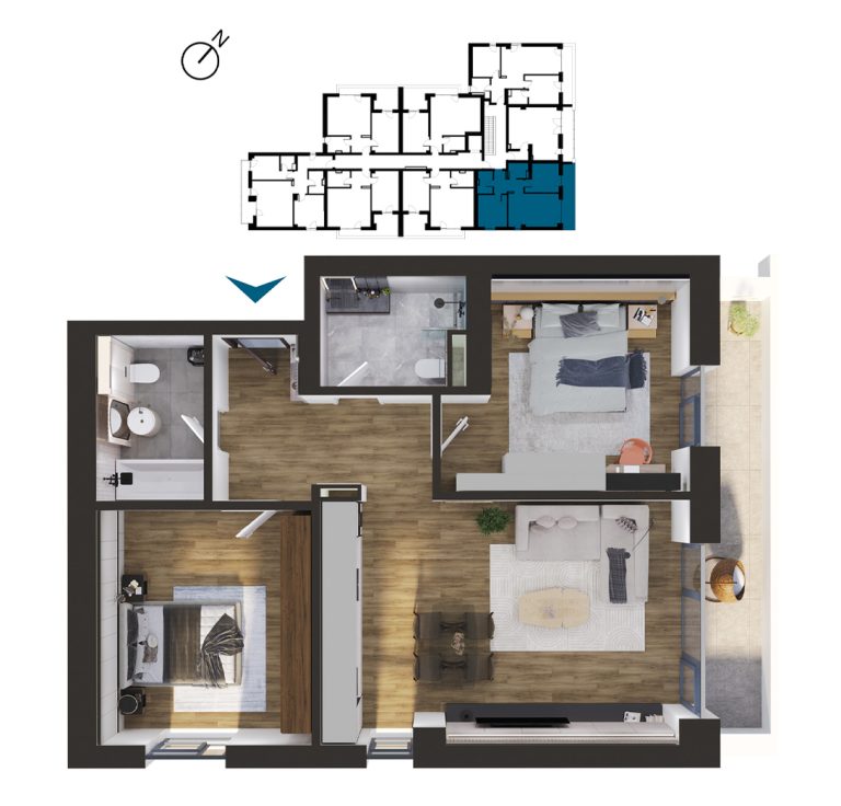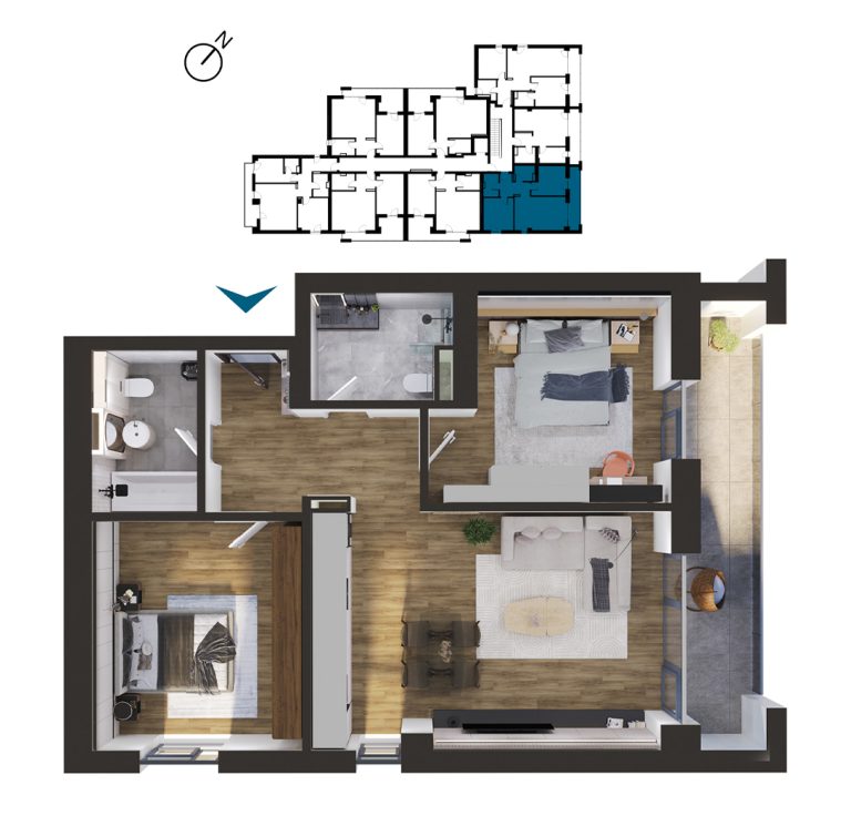 Vizualizați apartamentele cu 3 camere disponibile în imobilul T1. Apăsați pe apartamentul dorit pentru a afla mai multe informații.